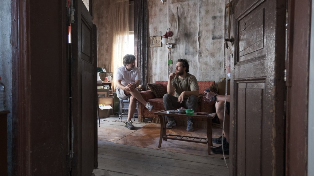 Can Ulkay and Çağatay Ulusoy on the set of “Paper Lives.”